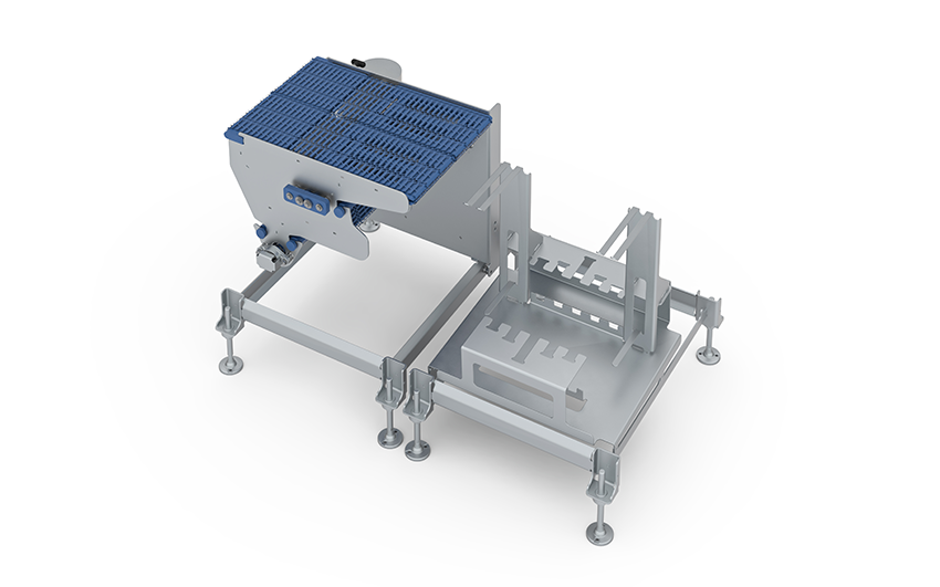 Freestanding reject mechanism; widths available to match X-ray conveyor, standard line heights from 700 mm (27.5”) to 1100 mm (43.3”)
