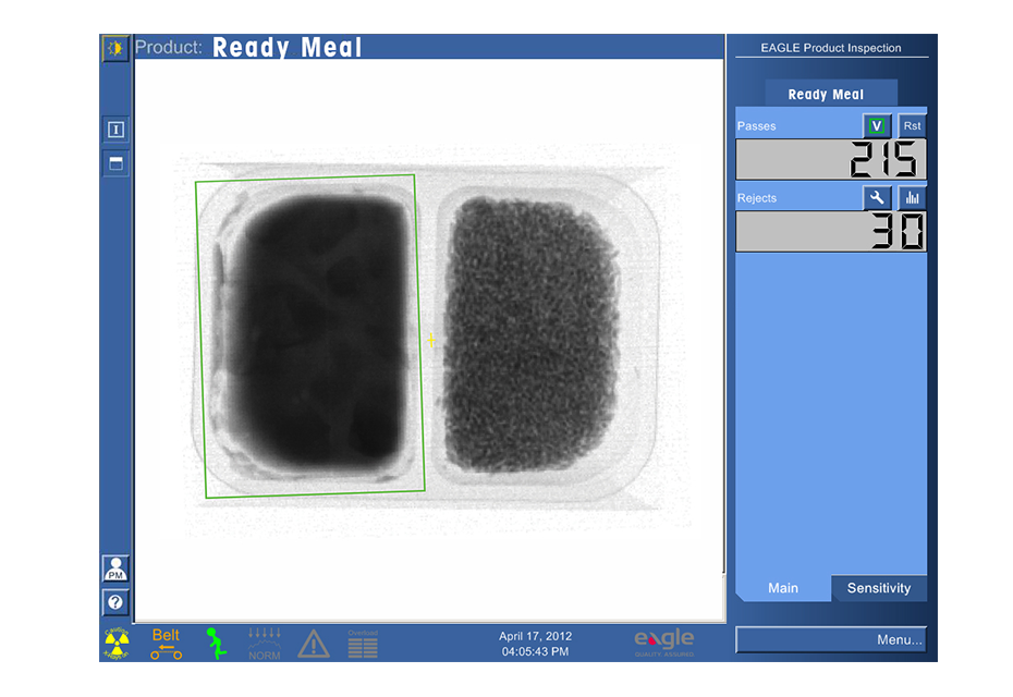 A integridade da embalagem é uma questão vital de controlo de qualidade para os fabricantes de produtos alimentares e farmacêuticos. Não só é essencial identificar e rejeitar embalagens deformadas, mas também é extremamente importante que os selos permaneçam herméticos para garantir a esterilidade dos produtos farmacêuticos e a frescura dos produtos alimentares. As vedações podem ser facilmente comprometidas por partículas de produto, contaminantes físicos ou produto mal colocado. Qualquer coisa presa dentro do selo de uma refeição pronta ou pacote de queijo, por exemplo, pode acabar em deterioração do produto. Os sistemas de inspecção de raios X da águia são capazes de identificar partículas tão pequenas como 1 mm capturadas em áreas de focas e rejeitar estes produtos comprometidos da linha de produção.